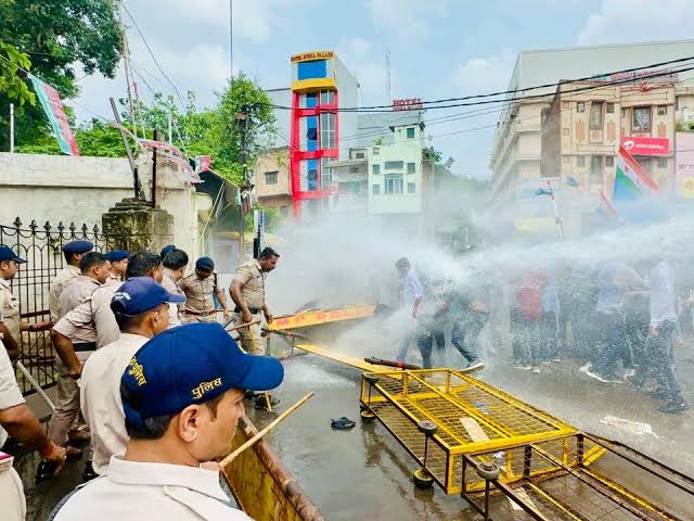 विगत दिनों जबलपुर में NSUI के कार्यकर्ताओं द्वारा कलेक्ट्रेट का घेराव किया गया था। इस दौरान पुलिस द्वारा की गई लाठी चार्ज में कई कार्यकर्ता घायल हो गए थे। इसी क्रम में आज गुरुवार को NSUI के कार्यकर्ताओं द्वारा इंदौर स्थित देवी अहिल्या विश्वविद्यालय की परीक्षाओं में गड़बड़ी का आरोप लगाते हुए प्रदर्शन किया गया। NSUI के कार्यकर्ता जब बेरिकेड्स पर चढ़ने लगे तो पुलिस ने वाटर कैनन से रोकने की कोशिश की।इसके बाद प्रदर्शनकारियों को दौड़ा-दौड़ाकर खदेड़ा और लाठियां भी भांजीं।